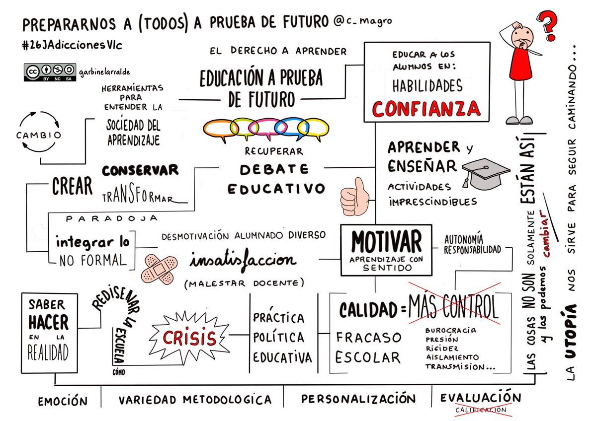 Garbiñe Larralde, profesora de bachillerato y coordinadora TIC en el Colegio Jesús María de Bilbao, nos regaló este fantástico mapa visual de la ponencia de Carlos Magro, haciendo gala de la utilidad de este recurso para expresar ideas.